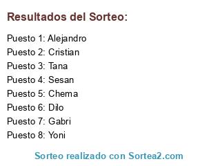 Lista de participantes: Chema, Sesan, Cristian, Gabri, Alejandro, Yoni, Dilo, Tana.
