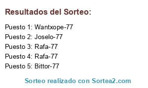 Lista de participantes: Rafa-77, Rafa-77, Joselo-77, Wantxope-77, Bittor-77.