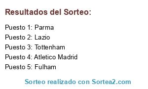 Lista de participantes: Fulham, Tottenham, Lazio, Atletico Madrid, Parma.