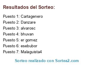 Lista de participantes: Cartagenero, er gomez, esebubor, bhuvan, Malaguista4, alvarosc, Danzare.