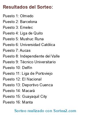Lista de participantes: Independiente del Valle, Emelec, Universidad Católica, Aucas, Liga de Quito, Delfín, Técnico Universitario, Barcelona, Guayaquil City, Deportivo Cuenca, Mushuc Runa, Manta, Macará, Olmedo, El Nacional, Liga de Portoviejo.