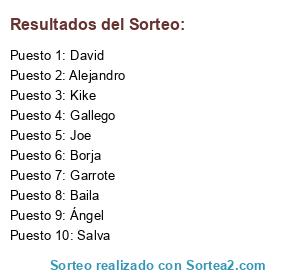 Lista de participantes: Garrote, David, Baila, Gallego, Alejandro, Joe, Salva, Kike, Ángel, Borja.