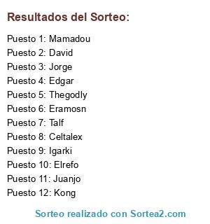 Resultados del sorteo: