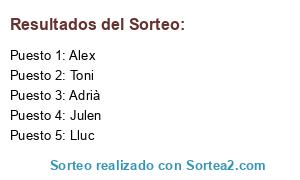 Lista de participantes: Adrià, Alex, Julen, Lluc, Toni.