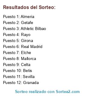 Lista de participantes: Athletic Bilbao, Almeria, Betis, Celta, Elche, Getafe, Girona, Granada, Mallorca, Rayo, Real Madrid, Sevilla.