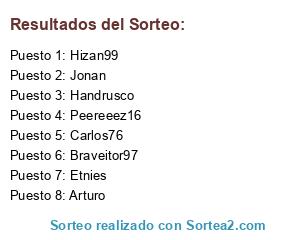 Lista de participantes: Handrusco, Etnies, Arturo, Braveitor97, Hizan99, Jonan, Peereeez16, Carlos76.