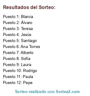 Resultados del sorteo: