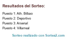 Lista de participantes: Villarreal, Deportivo, Arsenal, Ath. Bilbao.
