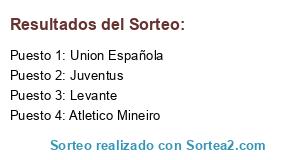 Lista de participantes: Atletico Mineiro, Union Española, Juventus, Levante.