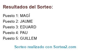 Lista de participantes: MAGÍ, PAU, JAUME, GUILLEM, EDUARD.