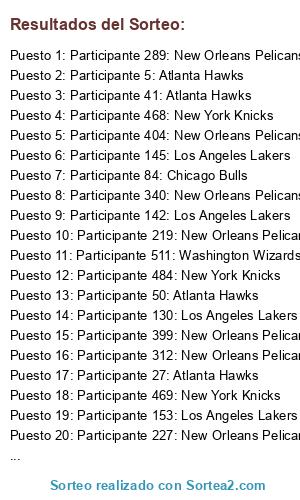 - Puesto 1: Participante 289: New Orleans Pelicans