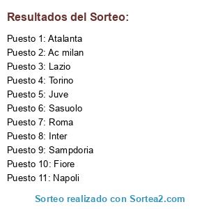 Lista de participantes: Napoli, Lazio, Sampdoria, Sasuolo, Torino, Ac milan, Fiore, Roma, Juve, Inter, Atalanta.