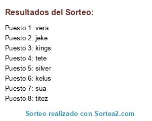 Lista de participantes: jeke, kings, tete, sua, vera, silver, kelus, titez.