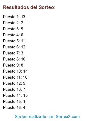 Lista de participantes: 1, 2, 3, 4, 5, 6, 7, 8, 9, 10, 11, 12, 13, 14, 15, 16.