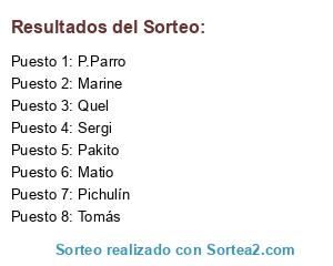 Lista de participantes: Quel, Pichulín, P.Parro, Matio, Marine, Tomás, Sergi, Pakito.