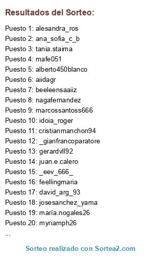 Lista de participantes: toni_navarrete69, lorena_monruz93, _gianfrancoparatore, kiwireally, giselabb6, lauferni, ana_sofia_c_b, aiidagr, m3lassudat0d0, ghisemrc, desydrama, alexgcpriiv, josesanchez_yama, super_iki, jjuuddiiss13, lowrider84, patri1484, carmelita.61, andrade_dani10, pvvr_hpv, 00000raphouse00000, billythefuckingkid, nagafernandez, idoiarodriguez, idoia_roger, idoia.rosas, idoiaarsj, sofiagranado, sofia_granada234, sofia_granado7000, maría.nogales26, jessica_garciallopis, alesandra_ros, davidrc, ntta.c, noeco86, myriamph26, ebl.ink, gerardvll92, rei_llobe, cristianmanchon94, beeleensaaiiz, naatiiii_, andrescalero14, entroentuklase, david_arg_93, _eev_666_, juan.e.calero, mafe051, daniela_s_pacheco, erikml08, marcossantoss666, hg7_r.s, pescatore, frandk, lb.rom6, luisval_rl, feellingmaria, m.a.r.r.u.a, tania.staima, montserrat.l, lunsc24, largo903, elsauky, noemibq, alberto450blanco.