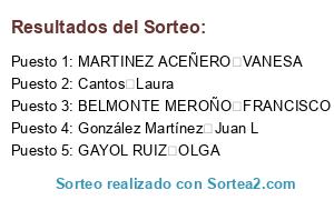 - Puesto 1: MARTINEZ ACEÑERO VANESA