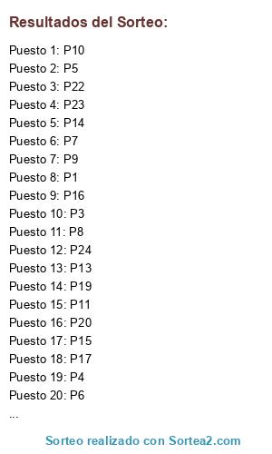 Resultados del sorteo: