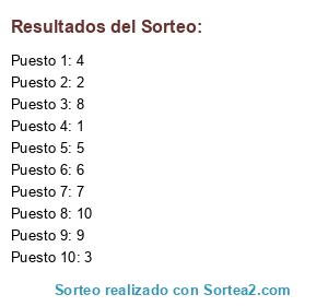 Resultados del sorteo: