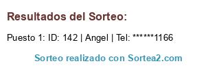 Este sorteo ha sido certificado por Sortea2. Sortea2 garantiza que: