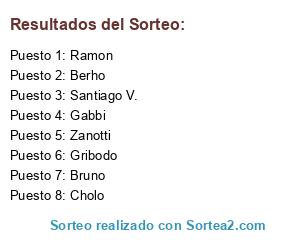 Lista de participantes: Gribodo, Berho, Ramon, Cholo, Bruno, Gabbi, Zanotti, Santiago V..