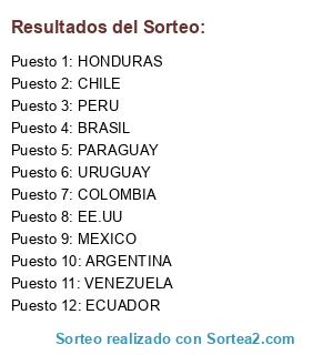 Del 1 al 12 corresponde el país a cada jugador de igual numero en los sorteos.