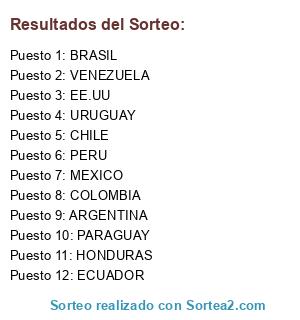 Lista de participantes: ARGENTINA, BRASIL, CHILE, URUGUAY, COLOMBIA, PERU, ECUADOR, VENEZUELA, MEXICO, EE.UU, PARAGUAY, HONDURAS.