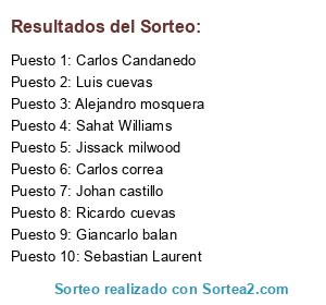 Lista de participantes: Johan castillo, Alejandro mosquera, Ricardo cuevas, Luis cuevas, Sebastian Laurent, Sahat Williams, Carlos correa, Jissack milwood, Giancarlo balan, Carlos Candanedo.