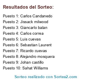 Lista de participantes: Johan castillo, Alejandro mosquera, Ricardo cuevas, Luis cuevas, Sebastian Laurent, Sahat Williams, Carlos correa, Jissack milwood, Giancarlo balan, Carlos Candanedo.