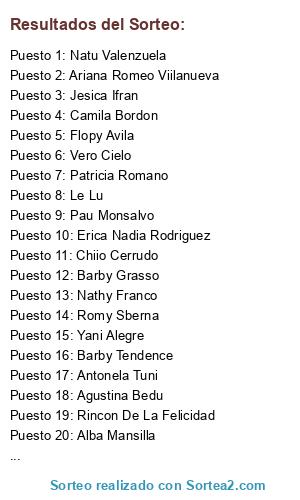 Lista de participantes: Betiana Rodriguez (10 participaciones), Gise Vero , Le Lu , Pame Benitez , Yan Carrizo , Maria Nahiu Debur , Yesica J Gonzalez , Jesica Ifran , Romy Sberna , Belü Suarez , Tati Tati , Soledad Benitez , Beel Y'Maty , Nathy Franco , Chiio Cerrudo , Flopy Avila , Maria Fernanda Delgado de Vergara , Meli de la Flor , Silvia Lescano , Laura Veronica Guiñazu , Sabry Martinez , Mariela Haller , Maria Videla , Mariela Hunko , Magdalena Galván , Jessica Sack , Sofia Modragon , Barby Grasso , Sol T Barreiro , Lore Fernandez , Alicia Mis Pks , Ramy Karu , Micaela Piu Riva , Carito Santoro , Patricia Herrera , Cecilia Fernandez , Lara Albornoz , Anahi Freire , Dannii Telmo , Karina Daguerre , Giuli K Elena Ponce , Mariana Paola Corpus , Marce Natura Daguerre , Feria De Garage Claypole , Antonela Tuni , Fili Maidana , Pao de Wilde , Natalia Enriquez , Graciela Olsen , Adriana Maciel , Leticia Soage , Yoha Lopez , Mercedes Córdoba , Yanina Pamela , Cami Bernal , Andy Lizarriaga , Vanesa Patricia Leiva , Priscila Varela , Malvi Valdez , Liliana Santillan , Patricia Romano , Cande Sandoval , Ashe Torres , Celeste Sandoval , Euge Fernandez , Yani Alegre , Maii Torres , Deborah Gabriela Rojas , Clau Romero , Lucia Sosa , Agus Quiroz , Mi Pilates , Jazmin Chavez Marchetti , Matilde Biscaldi , Jesica Flanagan (8 participaciones), Pau Monsalvo , Flor García , Florencia Vallejos , Mariana Ramirez , Ariana Romeo Viilanueva , Eve Lyn , Juliana Guevara , Flor Puente , Camila Bordon , Lauri Lobo , Ro Lennon Osso , Al Ald , Rosario Etchegaray , Giisel Antiito , Agustina Bedu , Alba Mansilla , Natu Valenzuela , Erica Nadia Rodriguez , Day Paz , Natu Magallan , Fatima Sandoval , Marucitta PunchPunk , Barby Tendence , Anto Medina , Carla Isabel , Noelia Bizgarra , Vale Zarco , Marisa Sosa , Malu Ramirez , Eliana Biscaldi , Brenda Sandobal , Dana Latorre , Erhyss Delgado , Pamela Franco , Nati Vallejos , Rincon De La Felicidad , Valentina Silva , Vero Luna , Elizabeth Martinez , Analia Cuevas , Barby Lopez , Maria Gonzalez , Vero Cielo , Julieta Paez.