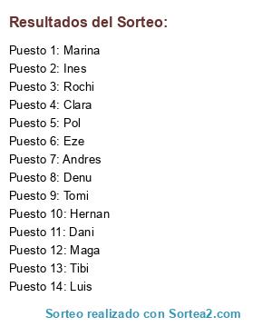 Resultados del sorteo: