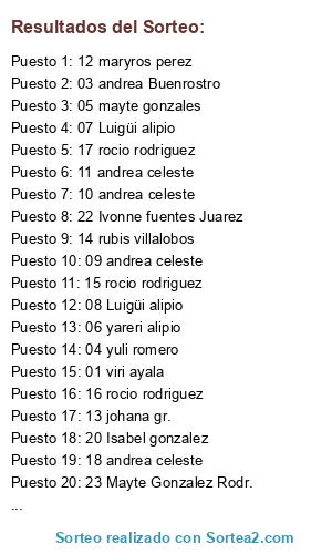 Lista de participantes: 01 viri ayala, 02 luna ornelas, 03 andrea Buenrostro, 04 yuli romero, 05 mayte gonzales, 06 yareri alipio, 07 Luigüi alipio(3 participaciones), 08 Luigüi alipio, 09 andrea celeste, 10 andrea celeste, 11 andrea celeste, 12 maryros perez, 13 johana gr., 14 rubis villalobos, 15 rocio rodriguez, 16 rocio rodriguez, 17 rocio rodriguez, 18 andrea celeste, 19 taati chavez, 20 Isabel gonzalez, 21 Hugo Jair Huerta, 22 Ivonne fuentes Juarez, 23 Mayte Gonzalez Rodr..