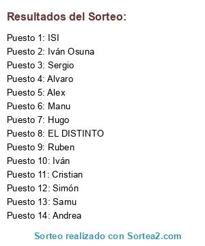 Lista de participantes: Iván, EL DISTINTO, Simón, Ruben, Alvaro, Cristian, Sergio, ISI, Hugo, Alex, Iván Osuna, Andrea, Samu, Manu.