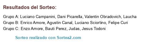 Lista de participantes: Agustin Canal, Bauti Perez, Dani Picarella, Enrico Amore, Enzo Amore, Felipe Curi, Judas, Laucha, Luciano Campanini, Luciano Sciortino, Jesus Todoni, Valentin Obradovich.