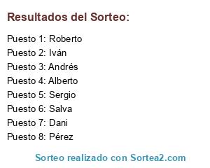 Lista de participantes: Iván, Salva, Andrés, Alberto, Roberto, Dani, Pérez, Sergio.