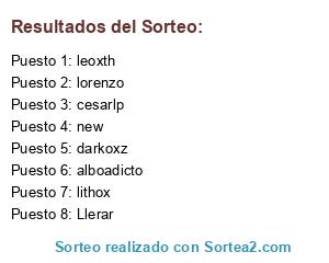Lista de participantes: leoxth, new, Llerar, lorenzo, darkoxz, cesarlp, alboadicto, lithox.