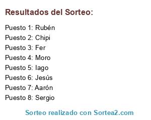Lista de participantes: Aarón, Jesús, Chipi, Rubén, Sergio, Iago, Fer, Moro.