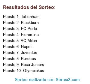 Lista de participantes: AC Milan, FC Porto, Tottenham, Juventus, Burdeos, Napoli, Fiorentina, Blackburn, Olympiakos, Boca Juniors.