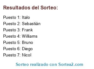 Resultados del sorteo: