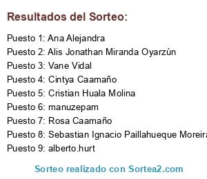 Este sorteo ha sido certificado por Sortea2. Sortea2 garantiza que:
