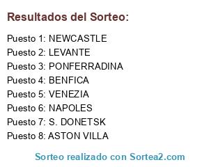 Lista de participantes: NEWCASTLE, CHAPECOENSE, VENEZIA, LEVANTE, BENFICA, BETIS, S. DONETSK, PONFERRADINA, ASTON VILLA, NAPOLES, AT. MADRID.