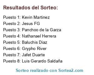 Lista de participantes: Kevin Martinez, Jesus FG, Panchoo de la Garza, Nathanael Herrera, Baluchis Diaz, Grypho River, Jafet Duarte, Luis Gerardo Saldaña.