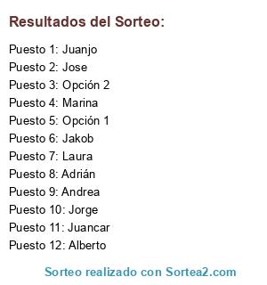 Lista de participantes: Adrián, Alberto, Andrea, Jakob, Jorge, Jose, Juancar, Juanjo, Laura, Marina, Opción 1, Opción 2.