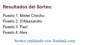 Lista de participantes: Ales, D'Alessandro, Mister Chechu, Paul.