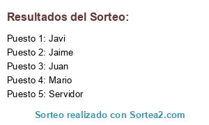 Lista de participantes: Pepe, Juan, Javi, Mario, Jaime, Mariano.
