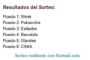 Lista de participantes: Barcelula, Pokianchis, CSKA, Glandes, Exiliados, Shrek.