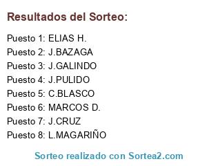 Lista de participantes: J.BAZAGA, J.GALINDO, ELIAS H., L.MAGARIÑO, C.BLASCO, J.PULIDO, J.CRUZ, MARCOS D..