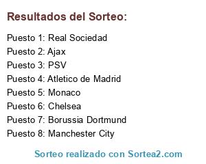 Resultados del sorteo: