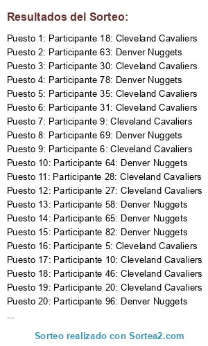 - Puesto 1: Participante 18: Cleveland Cavaliers