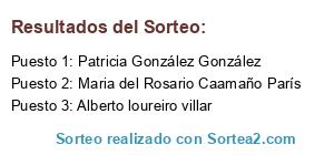 Lista de participantes: Jesus Manuel Dominguez Pillado, Alberto Ibañez García, Conchi Vázquez Goris, Sonia Díaz Pena, Lourdes Arias Nodar, Clara Rosa Vásquez Vásquez, Elvira santiso rielo, Mindy Carlin Pottier, Clara Santiso Rielo, María Cristina Moreira Covelo, Patricia González González, Laura Pinal Penedo, MEsther Rosende Martínez, Ana, Jacobo, Mónica Vázquez García, Ramona Lampon, Laura Ortega Barreiro, Sara Chao García, Maria, Óscar Baluja Montoiro, Yumara de Sousa gago, José Miguel Carro Vázquez, Almudena Rey Lorenzo, Silvia Gómez Villar, Natividad Vázquez Goris, Alejandro Tomé Alves Castro, Brenda Alves Castro, Daniel Otero Maiño, Elena Vulpescu, María López Amado, alejandro Seoane seoane, Óscar Touceda Ferrin, Alejandro García Gendra, Marga Rial Noya, Rita, Ismael Puerto, Jaime Nine Daponte, Eva Tato Collazo, Rita maria saborido olveira, Vanesa Davó Ortuño, PATRICIA BARREIRO RODRÍGUEZ, Mary Carmen Gómez Seijas, Lorena López Gómez, Aroa martinez bardon, Gonzalo García García, Maria Conde sanchez, Ana Belén Prieto Valladares, José María Prieto Valladares, Jael Luna Mansilla, Iria suarez castillo, Martin Louro Barreiro, Matilde fernandez, Fernando Losada, Ángel moraña, Maria Del Carmen Ducid Castro, Miriam Otero, Aidara Barral Martinez, Miguel Dorado Vieitez, Marcelo Olagaray, Patricia Perlo, María del Carmen palla VIDAL, Leticia Leiro Patiño, Nerea Vázquez Alfageme, Javier Gayoso Collazo, Pablo Cespón, Raquel Sóñora Freire, José Manuel Solleiro Rodríguez, Ernesto Ferreira Urceira, Manuel García Sánchez, Rocío Rey Bascuas, Pascal Dios Jürgens, Roberto Suarez Fernandez, Raquel Fernández Silvestre, MANUEL PASTORIZA REY, Barbara Kordas, Manuel santiago pouso, Laura Souto Yglesias, David José Soto Díaz, TANIA SANGIAO PIÑEIRO, José Naseiro Naseiro, Cristian Gonzalez Vazquez, Enrique Alfonso Vidal, Manolo García García, Lara María González Gómez, Selvina Castro, Carmen, Sofi Mesias, José María morirá matos, Sylvia Lustres García, Alba gonzalez peña, Ismael Paz Roelofsen, Fátima Martínez Gómez, Ana Neira Lopez, David canda castro, Andrea villegas, Jonathan Cardama Castro, Manuela Rama Torea, Daniel Freire Amor, Vicente Molinos Enriquez, Maria Fernanda Pereira Campo, Argimiro castelo sieira, MARIA REGUEIRO CARBALLO, José Fervenza Otero, Jenaro Sánchez, Maria esther, Sergio diez diez, Beatriz Carreto Macho, Ana Gómez Otero, Gabriel Vidal, Ruben viqueira viqueira, Yolanda touris Martinez, Vicente Paramá Carollo, María luz Casal Iglesias, María José Caramés Picón, María soledad González casero, Anxo Soto, Roberto Balado, Mónica Silva Alonso, noelia díaz, Digna garcia gonzalez, Patricia seco garcia, andrea lopez rua, Ángela Lede Cancelo, antia sánchez hermida, Irene Falcon Lede, Leonor Magariños Pisos, Jesús Magariños Pisos, Belén Roma Rey, Begoña jacome González, David garcia ramos, Lucía García Fernández, Javier Pérez Castiñeora, Eva María jamardo alvarez, Vanesa Jamardo, M carmen jorge lopez, Daniel Ríos Ramos, David Iglesias Castro, María José Pereira campo, Cristina Taboada casal, Cristina Perez Paz, Victor castiñeira Lopez, Iago Maneiro Ruibal, Marcos pose cundins, Pablo Pose Mato, Gonzalo Varela barca, Ana María cancela facal, Marta Miguez Bugarin, Rubén Huertas Otero, Jorge Rodríguez Mallo, Rebeca Garcia Mantiñan, ESTEBAN VILA LORENZO, Yuris Palacio Laguna, Daniel Bastos Cruces, Lucia Nieto Bouza, Rosa María, Aitor Caamaño rey, Ainhoa Caamaño Rey, JUAN LUIS FLORES RIEDWYL, Telmo Rodríguez Martínez, Juliana Villegas López, Saray Ferreiro Blanco, Mara Álvarez Pérez, Lucia Alonso Perez, Raquel Bujan Cea, Ruben Vilanova Varela, Laura Meira Pérez, Manuel Paz fernandez, Jose costa rodriguez, Oscar lopez nieves, Alba Dieguez Castro, Alberto loureiro villar, Andrea seijas espantoso, Pilar Pérez, Oscar Luaces Losada, noelia parafita castro, Sergio fontan fojo, Puri Hoyos, Guadalupe Reboredo Duran, Pedro Romero Miguez, Isabel Gómez, Isabel Gomez González, Mar García Alonso, Gerardo Suarez Solares, Susana Blanco Conde, Joana Sotelino Troncoso, Miguel Moreiras, Alba Rey Jorge, Mari Carmen vidal paz, Almudena Quiñoy Calvo, Ramón insua Rodríguez, Lucia Sousa Silva, Anq pazos, Santiago Garcia Aller, Ana Claudia Montenegro, Julio Valencia molinos, Cristina pereiro jacobo, Ramón Ogando, Vanesa Sanchez ramudo, Rosa Maria Fernández Mendez, Lucia lorenzo, Marta García Fernández, Eva Barreiro miguez, javier benito, Noel González Álvarez, Carmen Moreira Cives, Enrique Arnau Perez, ADRIAN SOTO ALDAO, Sonia outimuro, Eduardo perez, Maria emilia cal Nicolau, Silvia rey cal, Jorge Barreiro González, Julio De la Fuente pose, Carmen tasende pereira, Julio De la Fuente, Leticia Caldas, Diego Martínez Seijas, Ana Fernández Ramos, Carmen Veiga, Alejandro Blanco Agaujo, Ivan Garcia estevez, Arturo Fernández Ramudo, María Ventas Olmedo, Silvia Maria Misa Diz, Laura Álvarez Casas, Florinda correa perez, Rosa Correa Perez, Iris García Rey, Hugo García Rey, Claudia Ojeda Sarabia, Manuel, Ivan hermida pan, Vanesa Rodríguez Cid, Mónica Gil Álvarez, Uxia vazquez castro, César Charlón Rico, Carmen Pico Abad, Monica castro, Mariluz, Martin Rey Fontenla, Martin, Belén SISTO lopez, Candido, Belén Sisto Lopez, Cristina Dorrego, Carlos Rodríguez Miguélez, Jason Pérez Domínguez, Andrés Torres Bouzada, Begoña Lores Padin, Marta Rey Colmeiro, Javier Matías Fernández, Sandra Monica Barreiro Dantas, Daniel Matías Fernández, Maria del Rosario Caamaño París, Auri veiga ojea, Odon Regueira Gil, Carmen Regueira Fernandez, David sobrado vilela, Isabel Fuentes, Nelly laso fernandez, Nicolás, ruben Blanco muñoz, Monica, Estibaliz Alvarez Rodriguez, Maria de los Ángeles Filgueira Santiago, Santiago Portabales Fernández, Oscar Sanmartin Filgueira, Sara Pintos López, José sepane, Juan Bacariza Santana, Marta caloto, Estrella Blanco Eiras, María Isabel Guiance Alastrué.